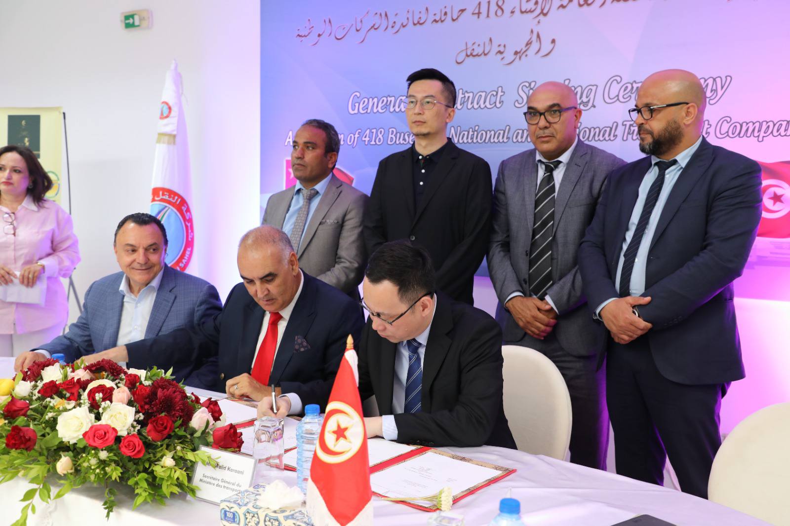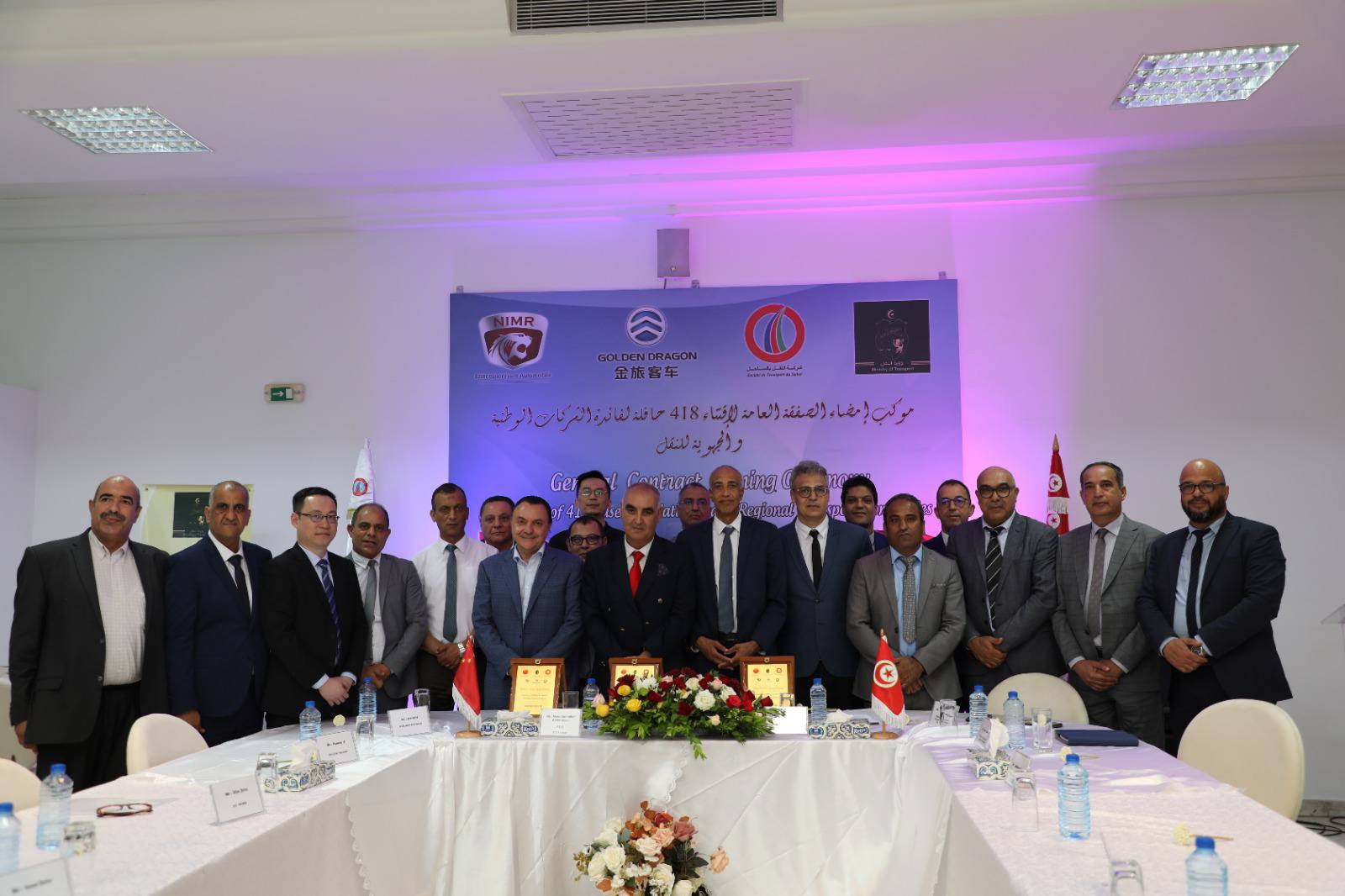 En exécution des instructions de Son Excellence le Président de la République, M. Kaïs Saïed, visant à promouvoir le secteur du transport public régulier et à améliorer ses services, et sur autorisation du Ministre du Transport, M. Rachid El Amri, le contrat global relatif à l’acquisition de 418 nouveaux bus a été signé dans l’après-midi du lundi 9 juin 2025 avec la société Golden Dragon, au profit des sociétés nationales et régionales de transport routier.